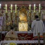 Сустрэчу прадоўжыла святая Імша, галоўным цэлебрантам якой быў біскуп Алег. Айцец Станіслаў Памыкала SJ у гаміліі звярнуў увагу на асобу святога Язафата Кунцэвіча, галоўнага апекуна Віцебскай дыяцэзіі, успамін якога заўтра будуць адзначаць у парафіях. Айцец Станіслаў нагадаў, што пасля смерці гэтага святога, многія навярнуліся, нават біскуп Мяленцій Сматрыцкі. І ў гэтым ёсць нейкі пэўны знак. «Мы маем вялікую ласку заступніцтва св. Язафата. Пралітая кроў мучаніка — гэта задатак новага жыцця і кожны павінен сур’ёзна ўспрымаць выклік таго жыцця, якім жыў святы біскуп», — звярнуў увагу духоўны айцец дыяцэзіі.