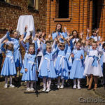 Пасля біскупскага бласлаўлення і спеву гімна “Магутны Божа” ў цудоўным выкананні докшыцкага хора ўрачыстасць прадоўжылася на пляцы перад касцёлам.