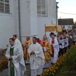 Закончылася богаслужэнне працэсіяй вакол касцёла і спевам гімна “Магутны Божа”. Дарэчы, заканчваць урачыстыя богаслужэнні гэтым гімнам стала ў Беларусі ўжо добрай традыцыяй.