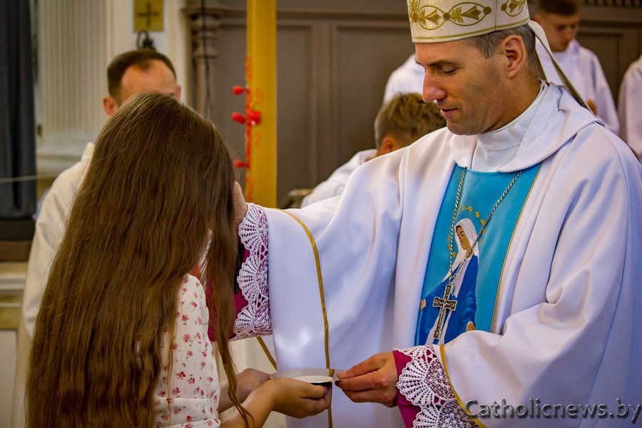 Цэлебрацыю ўрачыстай святой Імшы ўзначаліў біскуп Віцебскай дыяцэзіі Алег Буткевіч. На пачатку Імшы пробашч парафіі а. Яраслаў Банасяк шчыра прывітаў шаноўных гасцей – біскупа Алега, кс. пралата Францішка Кіселя, апостальскага візітатара а. Сяргея Гаека, святароў, законных сясцёр і братоў, Рыцараў Беззаганнай і ўсіх вернікаў, якія сабраліся ў святыні ў гэты святочны дзень. Айцец Яраслаў узгадаў ролю спачылага кс. пралата Булькі, пробашча з Мосара, які шмат зрабіў для вяртання і аднаўлення касцёла ў Удзеле ў 1989-2002 гадах. Таксама а. Яраслаў зачытаў Акт заснавання Беларускага Непакалянава ад 24 чэрвеня 2002 года.