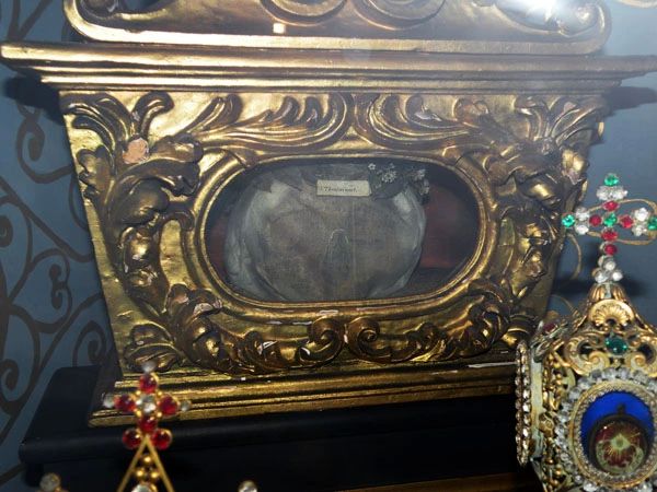 Сярод рэліквій ёсць чэрап св. Тэадора, поўны шкілет св. Дзмітрыя, кавалак плашчаніцы Езуса, зуб апекуна капліцы — св. Антонія Падуанскага і кавалачкі крыжа Хрыста.