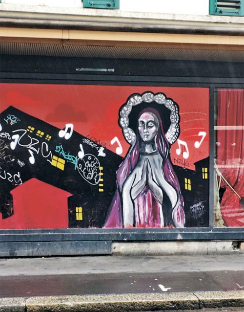 Графіці з Мадоннай размяшчаецца акурат побач з месцам, дзе стаяць жанчыны, якія гандлююць сваім целам (у Швейцарыі легалізавана прастытуцыя). Паводле слоў гераіні артыкула, сімвалізм вулічнай ілюстрацыі ў тым, што Усявышні ні ў якіх абставінах не грэбуе намі, грэшнымі