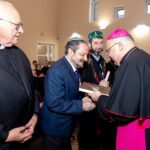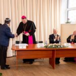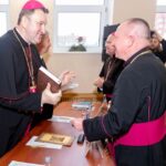 Напрыканцы прэзентацыі біскуп Аляксандр Яшэўскі ўрачыста прадставіў надрукаванае выданне «Пяцікніжжа Майсея» (Мінск, 2025) і разам з кс. Янам Крэмісам, яны ўручылі ганаровым гасцям першыя экзэмпляры кнігі.