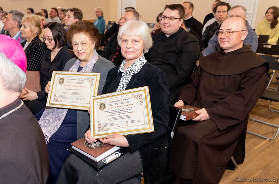 Фінальным акордам сустрэчы стала ўзнагароджанне ганаровымі граматамі Секцыі па перакладзе літургічных тэкстаў і афіцыйных дакументаў Касцёла Камісіі Божага Культу і Дысцыпліны Сакрамэнтаў пры Канферэнцыі Каталіцкіх Біскупаў Беларусі і архідыяцэзіяльнага выдавецтва «Pro Christo», чыя адданая праца зрабіла магчымым выданне «Пяцікніжжа Майсея» і правядзенне гэтай урачыстай і знакавай падзеі.