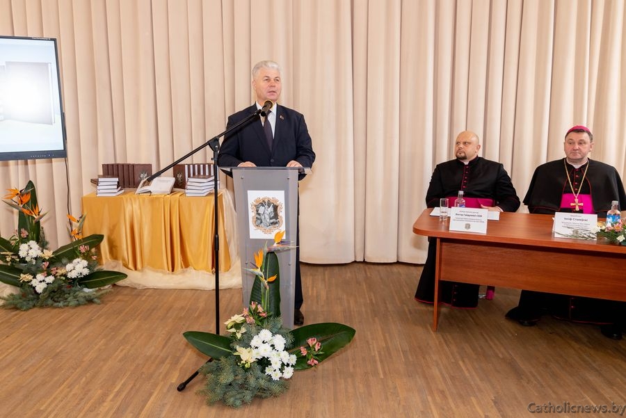 Да ўдзельнікаў мерапрыемства звярнуўся Аляксандр Румак, упаўнаважаны па справах рэлігій і нацыянальнасцей. Ён адзначыў, што з вялікай радасцю прыбыў на гэтую значную падзею, і падкрэсліў, што пераклад Святога Пісання на беларускую мову ўмацоўвае не толькі беларускасць Каталіцкага Касцёла, але і ўсё шматканфесійнае і шматнацыянальнае грамадства краіны. На яго думку, падобныя ініцыятывы з’яўляюцца важным крокам да ўмацавання добрасуседскіх і ўзаемапаважлівых адносін.