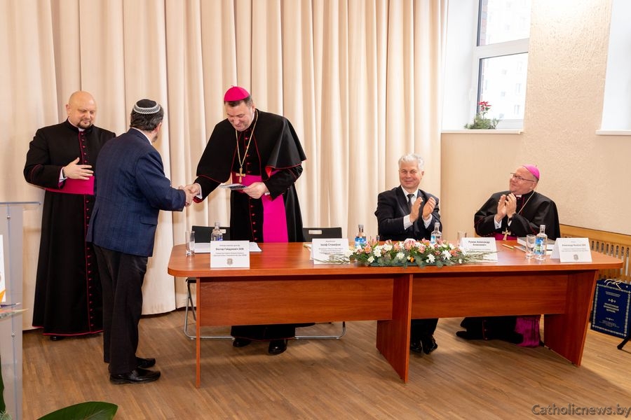 Фінальным акордам сустрэчы стала ўзнагароджанне ганаровымі граматамі Секцыі па перакладзе літургічных тэкстаў і афіцыйных дакументаў Касцёла Камісіі Божага Культу і Дысцыпліны Сакрамэнтаў пры Канферэнцыі Каталіцкіх Біскупаў Беларусі і архідыяцэзіяльнага выдавецтва «Pro Christo», чыя адданая праца зрабіла магчымым выданне «Пяцікніжжа Майсея» і правядзенне гэтай урачыстай і знакавай падзеі.
