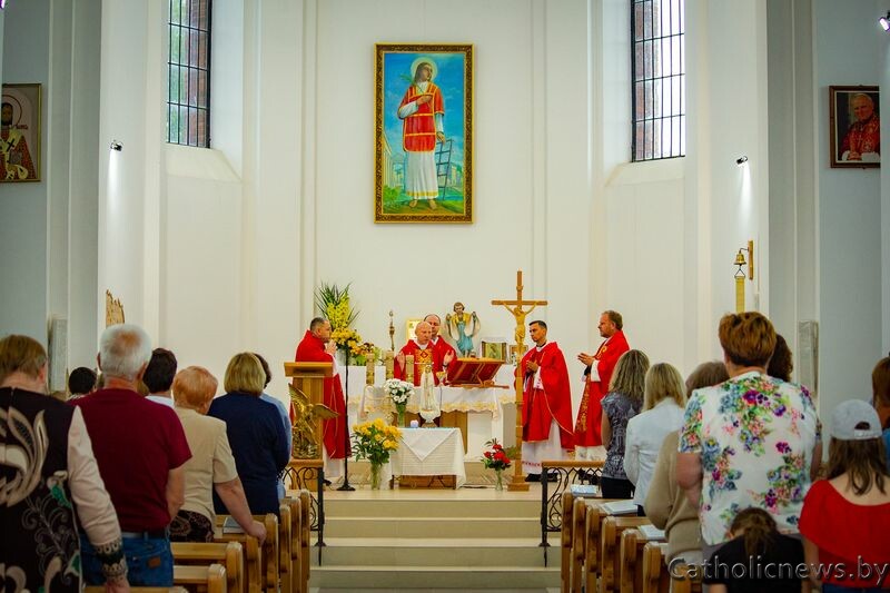 Гэтым спевам пачалася ўрачыстая святая Імша ў касцёле Святога Лаўрэна ва Ушачах. Святую Імшу ўзначаліў кс. Мікалай Ціхановіч.
