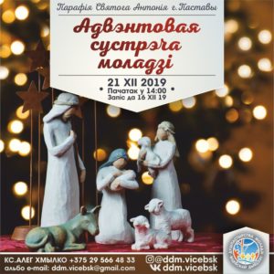 Душпастырства моладзі Віцебскай дыяцэзіі запрашае вучняў школ, прафесійных устаноў, студэнтаў ВНУ і працуючых маладых людзей на Адвэнтавую сустрэчу, якая адбудзецца 21 снежня ў Паставах пры парафіі Св. Антонія і Беззаганнага Зачацця Найсвяцейшай Панны Марыі.
