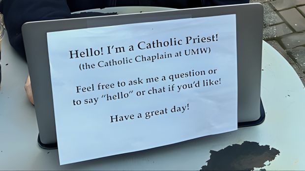 Айцец Рычард, капелан каталіцкага кампуснага служэння ва ўніверсітэце ў Вашынгтоне, сядзіць за круглым, моцна абшарпаным сталом. Тут адбываюцца размовы, як сур’ёзныя, так і менш сур’ёзныя, паміж глыткамі кавы і паездкай на заняткі.