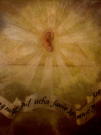 Цікава, што неаднойчы, малюючы вока прадбачання, мастакі таксама адлюстроўвалі Божае вуха, якое ўсё чуе і скіраванае, каб пачуць малітвы чалавека. Адзін з такіх абразоў можна ўбачыць на Гары Кальварыі (Польшча) у Санктуарыі святога Станіслава Папчынскага, заснавальніка Кангрэгацыі айцоў-марыянаў.