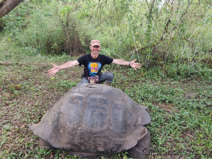 - На Галапагоскіх выспах побач з гіганцкай чарапахай