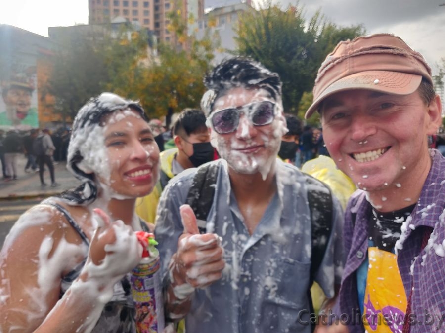 Мне ўвогуле падабаецца назіраць, як праходзяць галоўныя каталіцкія святы ў розных рэгіёнах. Напрыклад, у сталіцы Балівіі (Паўднёвая Амерыка) моладзь і дзеці, пачынаючы з “тлустага” чацвера і заканчваючы аўторкам перад Папяльцовай серадой, удзельнічаюць у масавых гульнях з пенай і вадой на плошчы перад базілікай св. Францішка. Пальмавая нядзеля ў гэтай краіне называецца Damingo de Ramos, што ў перакладзе з іспанскай – “Букетная нядзеля”. Вернікі робяць вялізныя букеты з кветак, чапляюць да іх пачастункі і нясуць на асвячэнне ў касцёл. На працягу Вялікага Тыдня вернікі вырушаюць у пілігрымку з Ла Паза ў Капакабану, ідуць 150 км да мясцовага санктуарыя Маці Божай. Аднак больш за ўсё ў Балівіі мяне ўразіла працэсія, каторая адбываецца ў Вялікую Пятніцу. З кожнай парафіі выходзяць людзі і крочаць галоўнай вуліцай горада. Наперадзе нясуць крыж, пасля – драўляную платформу з труной Хрыста і фігурай Марыі. Затым ідуць біскупы і афіцыйныя асобы. Замыкае шэсце аркестр.