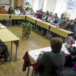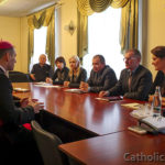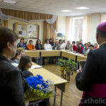 На гэтым візіт не скончыўся і біскупа запрасілі ў адзін з класаў, дзе яго чакалі настаўнікі. Як пасля адзначыў сам іерарх, што з такой колькасцю (каля 50!) настаўнікаў ён размаўляў упершыню. Педагогі актыўна задавалі біскупу Алегу шматлікія хвалюючыя пытанні. Былі закранутыя тэмы сістэмы адукацыі ў Каталіцкім Касцеле, хрысціянскім і маральным выхаванні маладога пакалення. Не абмінула высокага госця і пытанне пра пакліканне да святарства. Хоць адказ на яго – вялікая таямніца, нават для самога святара, але іерарх падзяліўся сваімі ўспамінамі з гадоў вучобы ў школе, ва ўніверсітэце і семінарыі.