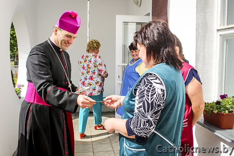 Пасля араторыя біскуп наведаў прытулак для састарэлых людзей, дзе яго вельмі чакалі. Іерарх паразмаўляў з насельнікамі прытулка, удзяліў ім біскупскае бласлаўленне, а таксама атрымаў падарунак ад супрацоўнікаў гэтай установы.