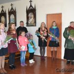 Напрыканцы Імшы вернікі выказалі падзякі біскупу, айцам-францішканам, якія працуюць у парафіі, і айцам-місіянерам і падаравалі ўсім кветкі. А Валянціна Арэхва, якая з’яўляецца кіраўніком дзіцячага лагеру ў Пятроўшчыне, прачытала прыгожы верш «Маліцеся за святароў».