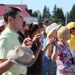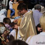 Ранішняя св. Імша ў Будславе прайшла традыцыйна на польскай мове. На палявым алтары пад кіраўніцтвам біскупа Віцебскага сабралася духавенства і пілігрымы. Прысутнічаў таксама дапаможны біскуп Гродзенскай дыяцэзіі Юзаф Станеўскі. Урачыстае набажэнства ўпрыгожваў сваім спевам хор «Авэ Марыя» з Глыбокага.