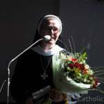 Напрыканцы Імшы сястра Магдалена Дзевульска CR з Наваполацка ад імя ўсіх законных сясцёр Віцебскай дыяцэзіі ўзгадала тую вялікую ролю, якую адыгрываюць святары ў жыцці Касцёла, і ў сувязі з Днём святара, які адзначаецца ў Вялікі Чацвер, павіншавала біскупа Алега і ўсіх ксяндзоў, уручыўшы кветкі Віцебскаму ардынарыю.