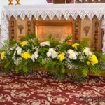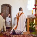 Потым святары разам з міністрантамі ўрачыста ўвайшлі ў храм. Што адразу кідалася ў вочы, гэта святочны выгляд касцёла, які быў упрыгожаны кветкамі. Гэта была праца Алены Татун, якой актыўна дапамагалі іншыя парафіяне. А яшчэ западаў у душу вельмі прыгожы спеў парафіяльнага хору! Адразу адчувалася, што ў парафіі сёння сапраўднае свята.