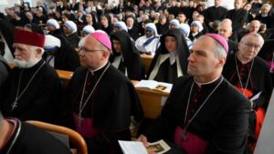 Прадстаўнікі каталіцкага епіскапату: старшыня Канферэнцыі Каталіцкіх Біскупаў у Беларусі, Біскуп Віцебскі Алег Буткевіч і старшыня Сінадальнай камісіі пры ККББ, біскуп Аляксандр Яшэўскі, 14 верасня 2022 года, у свята Узвышэння Святога Крыжа, у Нур-Султане ўзялі ўдзел у Імшы разам з Папам Францішкам.