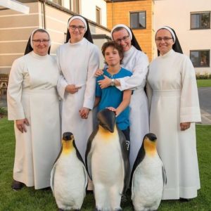 — Менавіта так! Мы вырашылі заняць такую пазіцыю: о’кэй, калі мы пінгвінкі, то павіншуйце нас! І людзям вельмі спадабалася нашае пачуццё гумару і самаіронія. Дзякуючы гэтаму роліку нас па-сапраўднаму заўважылі, мы змаглі расказаць, што будуем новы дом. Людзі былі ашаломленыя і захопленыя тым, што мы апякуемся хворымі дзеткамі, што хочам для іх стварыць добрыя ўмовы. У выніку з дапамогаю журналістаў мы вельмі хутка сабралі ўсю патрэбную суму і нават болей. Гэты выпадак дапамог многім людзям убачыць чалавечы твар Касцёла, убачыць, што мы нармальныя людзі. Мы думалі, што знойдзем вялікіх спонсараў, а ў выніку дом быў пабудаваны на малыя ахвяраванні вялікай колькасці людзей, многія з якіх — няверуючыя.