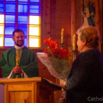 “Гэта мой першы вопыт, быў толькі вікарыем. Спадзяюся, што спрацуемся разам з вамі. Будзем адной сям’ёй і ісці ў адным кірунку да Божага Валадарства, клапоцячыся пра душу кожнага – маю і вашу. Пойдзем разам, нага ў нагу, і Бог нам у гэтым дапаможа”, — падзяліўся святар.