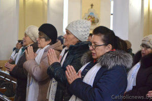 На пачатку перад Найсвяцейшым Сакрамантам усе матулі разам удзельнічалі ў малітве за ўсіх дзяцей, святароў і духавенства. Затым адбылася св. Імша, якую цэлебраваў біскуп Алег Буткевіч.