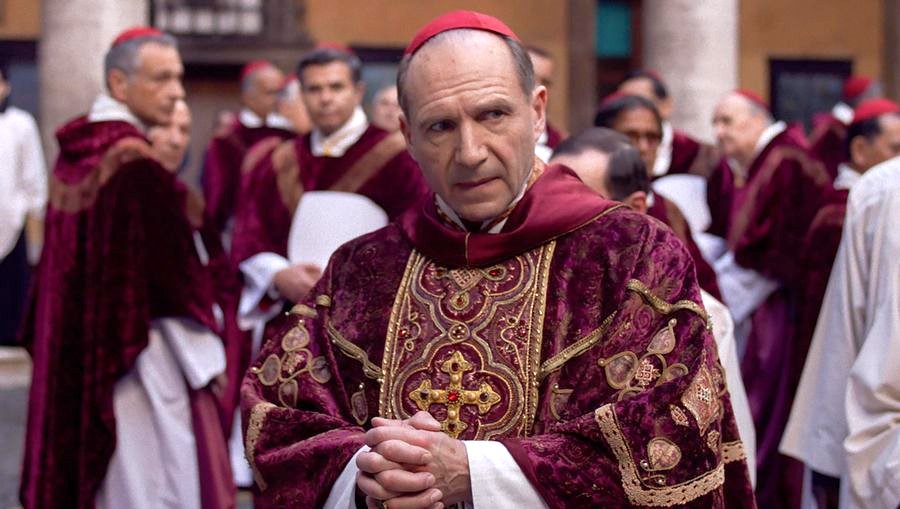 На пачатку фільм стварае ўражанне стэрэатыпнай гісторыі пра інтрыгі і паддывановую барацьбу ў сценах Ватыкана. У гулкіх калідорах разыгрываецца змаганне ўладных людзей у белым і пунсовым, кожны з якіх адкрыта ці глыбока ў душы прагне быць абраным і ўжо выбраў сабе імя на выпадак перамогі. Любы непрыкметны ўчынак, любое нядбайна кінутае слова тут становіцца спробай прамацаць глебу, заручыцца падтрымкай і прыцягнуць як мага больш галасоў на свой бок. Сцэны поўняцца глухім перашэптваннем, трывожнымі гукамі струнных інструментаў і халоднай, паказанай ва ўсіх драбніцах працэдурай выбараў пантыфіка.