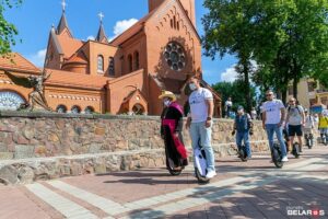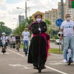 Кс. Владислав решил не изменять многовековой традиции – и отправился в Будслав в одиночку. Добираться туда он будет на моноколесе, в Минске до выезда из города его сопровождали поклонники этого нового средства передвижения.
