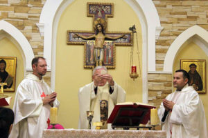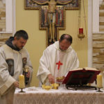 Архиепископу сослужили новый кустод российской Кустодии св. Франциска о. Дариуш Харасимович, викарий Кустодии о. Андриан Зудин, настоятель московского монастыря о. Пётр Корнелюк, гости из Армянской Католической Церкви и общины Салезианцев Дона Боско.