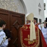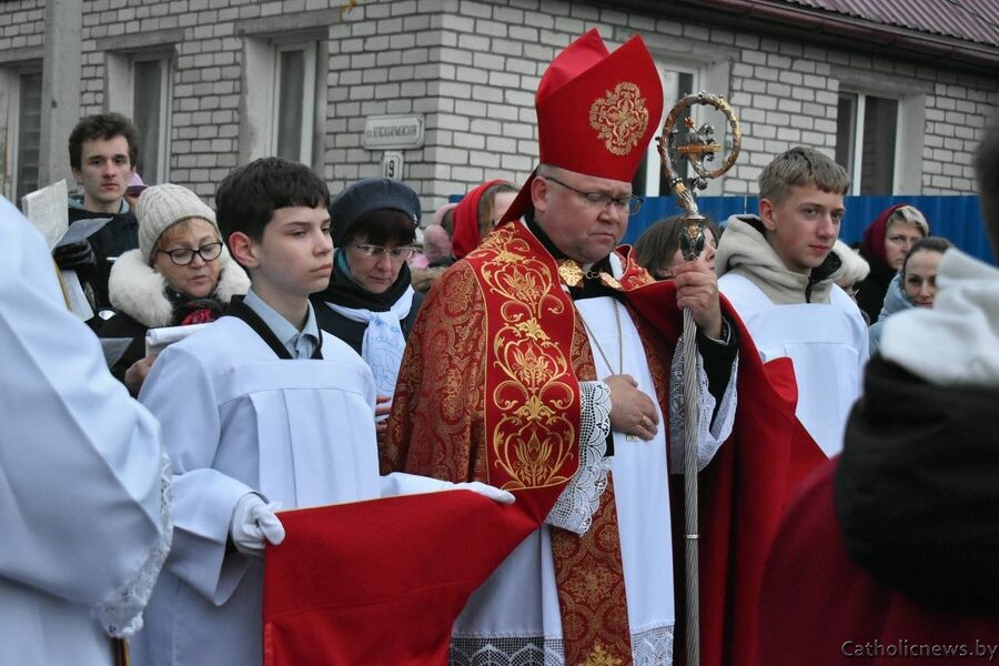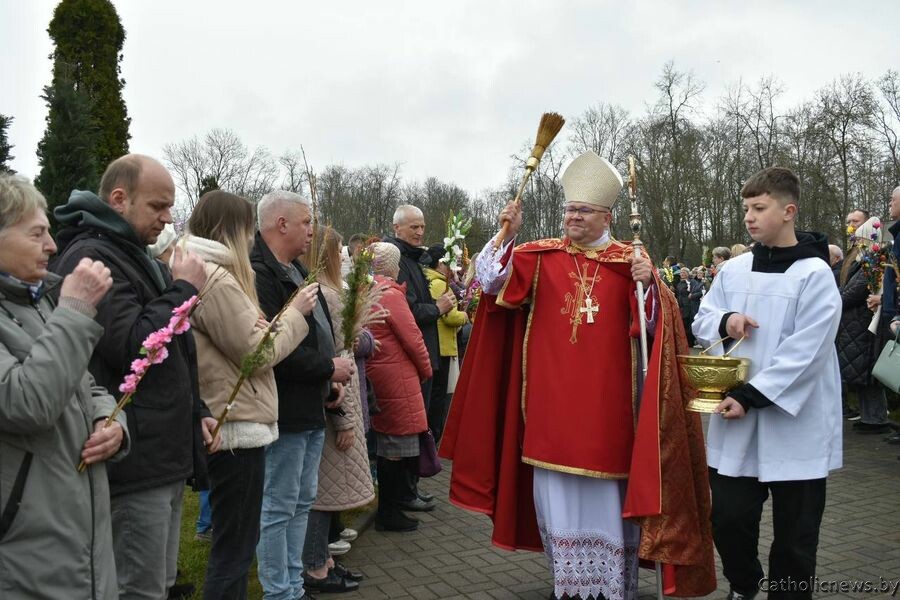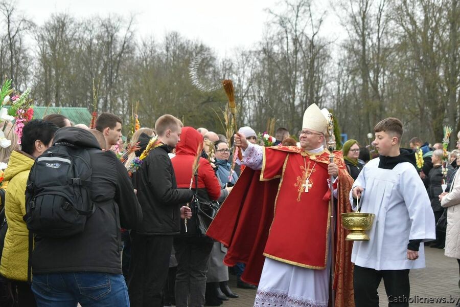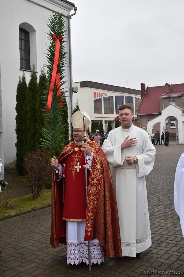 Пасля абраду асвячэння пальмаў біскуп разам з вернікамі ў працэссіі крочыў да дзвярэй парафіяльнага касцёла.