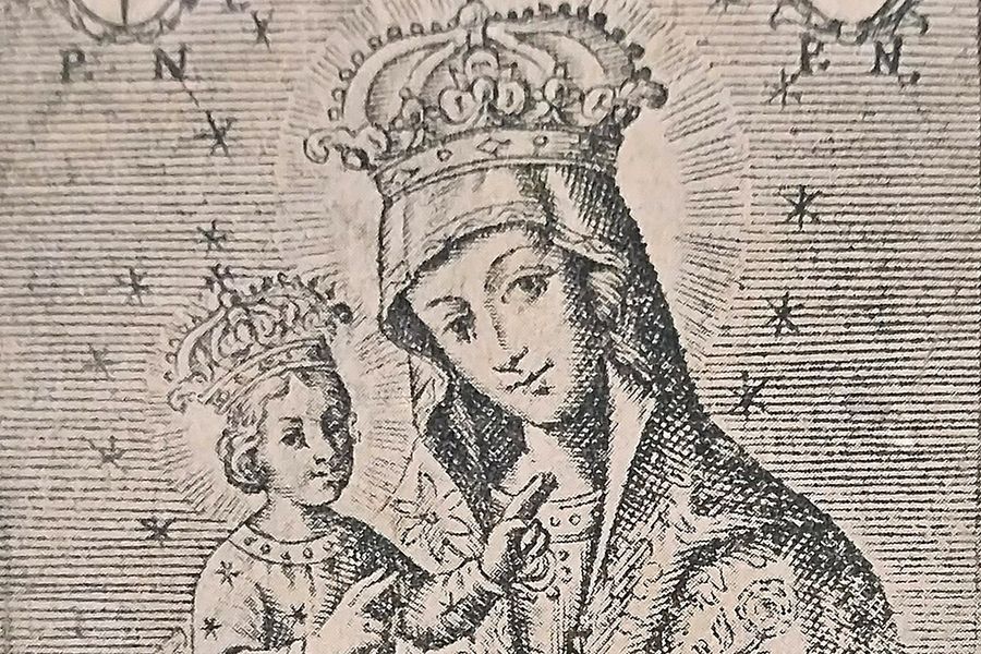 Ікона тая (магчыма, выкарыстаная салдатамі ў якасці разліку за паслугі) апынулася ў доме віленскага каваля Пятра Багуцкага, а потым – у месціча Мікалая Каламыснага. У 1649 годзе ён аддаў абраз кс. Крыштафу Пшэслоўскаму, каб той перадаў “святы дэпазіт” (ужо тады ікона славілася як цудадзейная) якому-небудзь касцёлу. Так рэліквія апынулася ў парафіі кс. Крыштафа ў Тургелях (паміж Вільняй і Ашмянамі).