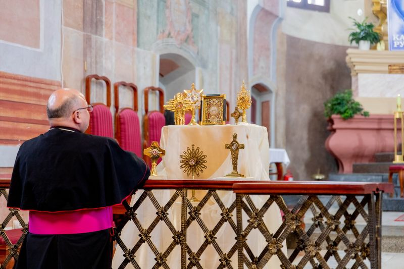 Ён падкрэсліў, што Эўхарыстыя — гэта сэрца Касцёла, жывая прысутнасць Хрыста, якая надае моц сведчанню кожнага верніка, а Марыя — гэта матчына апека, што вядзе праз цемру і захоўвае ад страты надзеі. «Карабель Касцёла заўсёды будзе пад абстрэлам, – адзначыў святар, – але ёсць дзве апоры, якія ніхто і ніколі не здолее зруйнаваць: гэта Хрыстус у Эўхарыстыі і Марыя, Маці Касцёла».