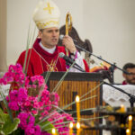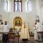 Біскуп Алег Буткевіч на пачатку прывітаў усіх вернікаў, падзякаваў ім за прысутнасць: “Няхай заступніцтва Божай Маці нам усім дапаможа!”