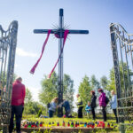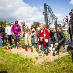 Напрыканцы святары і вернікі ўшанавалі крыж, што ўсталяваны на месцы мучаніцкай смерці жыхароў Росіцы і паставілі запаленыя знічы як знак нашай памяці.