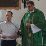 Потым з гэтай цудоўнай нагоды адбылася святая Імша. Цэлебрацыю Эўхарыстыі ўзначаліў пастыр дыяцэзіі разам з пробашчам парафіі, а Божае слова прамовіў біскуп Алег. Усе разам маліліся за Лепельскую парафію, а таксама за ўсю Віцебскую дыяцэзію, каб Усемагутны Бог апекаваўся ўсімі намі і нашымі роднымі.