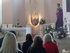 З гэтай нагоды ў парафіяльным касцёле адбылася ўрачыстая святая Імша. У гаміліі сакратар Рады па справах сям’і пры Канферэнцыі Каталіцкіх Біскупаў у Беларусі а. Пётр Фраштэнга OCD засяродзіў увагу на тэме «Што значыць вызнаваць Езуса Хрыста?».