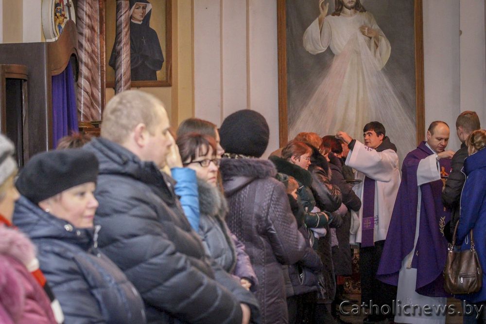 Пасля казання святары падыходзілі да людзей, каб пасыпаць галовы попелам са словамі “Кайцеся і верце ў Евангелле”.