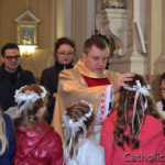 Святая Імша распачалася ў 11 гадзін з урачыстага ўваходу святара ў храм. Працэсія з ксяндзом-прыміцыянтам, вакол якога дзяўчаты неслі вянок, урачыста прайшла ад плябаніі да касцёла.