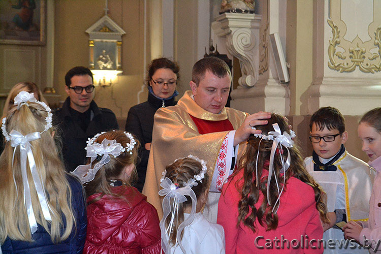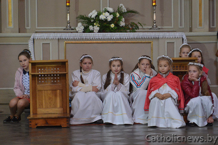 Святая Імша распачалася ў 11 гадзін з урачыстага ўваходу святара ў храм. Працэсія з ксяндзом-прыміцыянтам, вакол якога дзяўчаты неслі вянок, урачыста прайшла ад плябаніі да касцёла.