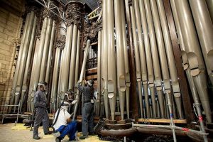 Хотя орган практически не пострадал ни от пламени, охватившего собор в апреле 2019 года, ни от воды, которой пожарные тушили огонь, в результате пожара он покрылся слоем свинцовой пыли. Кроме того, некоторые элементы инструмента подверглись воздействию перепада температур, в том числе аномальной жары 2019 года. И теперь он нуждается в тщательной прочистке и реставрации — это долгий процесс, который невозможно осуществить на месте.