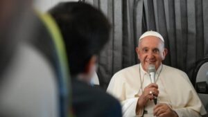 Малітва аб міры, злоўжыванні ў Касцёле, бліжэйшыя падарожжы і іншыя пытанні былі ўзняты 6 жніўня 2023 года падчас размовы Святога Айца з журналістамі на борце самалёта падчас яго вяртання з Лісабона ў Рым.