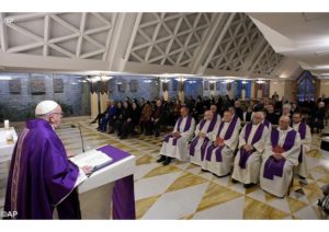 Касцёл хоча, каб мы змянілі наша мысленне ў адпаведнасці з вучэннем Хрыста, заўважыў Францішак падчас ранішняй св. Імшы ў Ватыкане. Спасылаючыся на літургічныя чытанні (2 Вал 5, 1-15а; Лк 4, 24-30), якія распавядаюць пра вылячэнне сірыйца Наамана, і прыводзяць словы Езуса, што “ніводзін прарок не з’яўляецца пажаданым на сваёй бацькаўшчыне”, Папа падкрэсліў, што вера і рэлігія не з’яўляюцца відовішчам.