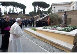 5 апреля в Ватиканских садах состоялась церемония открытия статуи святого Григория Нарекаци, по случаю встречи Папы Франциска и президента Республики Армения Сержа Саргсяна.