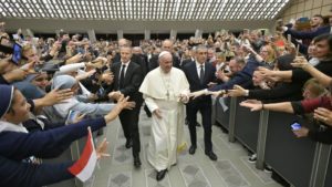 Святы Айцец заклікаў сваіх гасцей “адкрыць сэрца і розум” на разнастайнасць, даючы ад сябе “нешта арыгінальнае, канкрэтнае і карыснае”. “Вы, моладзь, не бойцеся быць патрабавальнымі да сваіх выкладчыкаў, якія, каб стаць настаўнікамі, павінны быць таксама сведкамі. А вы, выкладчыкі, не бойцеся патрабаваць ад сваіх студэнтаў, каб яны паказалі ўсё самае лепшае”, — даў параду Францішак.
