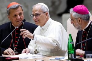 «Першае, што я хачу сказаць усім, – гэта місійнасць, абвяшчэнне Евангелля», — сказаў Леў XIV на пачатку сустрэчы з сінадальнымі групамі ў Ватыкане.