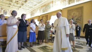 Папа падзякаваў усім жаночым інстытутам кансэкраванага жыцця, якія аказалі падтрымку сваім сёстрам у барацьбе з гандлем людзьмі і ў дапамозе ахвярам. На яго думку, улічваючы маштабы праблем, звязаных з гандлем людзьмі, неабходна прасоўваць сінергічную прыхільнасць з боку розных касцёльных інстытутаў.