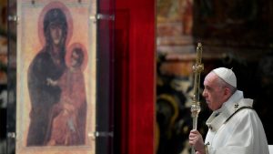 Маці Божая – гэта жанчына, і менавіта роля жанчыны важная для гісторыі збаўлення, Касцёла і ўсяго свету, — зазначыў Францішак. “Але колькі жанчын не атрымліваюць належнай ім павагі! Жанчына, якая прынесла ў свет Бога, павінна мець магчымасць унесці ў гісторыю яго дары. Патрэбныя яе прыклад і стыль. Гэта патрэбна і тэалогіі, каб яна была не абстрактнай і канцэптуальнай, а далікатнай, апавядальнай і жыццёва важнай”, — заўважыў ён.