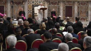 9 января Папа Франциск дал традиционную аудиенцию дипломатическим представителям при Святейшем Престоле по случаю наступления нового года. Обращаясь к дипломатам, Папа начал с добродетели надежды, пожелав, чтобы именно надежда воодушевляла взгляд на время, в которое мы живем. «Надежда требует реализма», – добавил Папа Франциск, констатируя, что новый год начинается отнюдь не с обнадеживающих знаков, а, скорее, с обострения напряженности и конфликтов. Святейший Отец особенно отметил рост напряженности между Ираном и США, который угрожает процессу медленного восстановления Ирака, а также проблемы на Западных Балканах и на Южном Кавказе, упомянув, в частности, Грузию. К этим «замороженным конфликтам», подчеркнул Св. Отец, следует подходить в духе диалога и уважения международного права. Вместе с тем Папа назвал и ободряющие факты, например, попытки разрешить конфликт на востоке Украины и положить конец страданию местного населения.