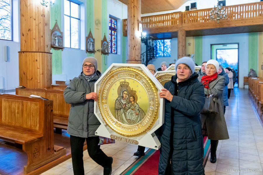 Абразы для ўшанавання вернікамі застануцца ў варапеўскім касцёле да 29 лістапада. У 11 гадзін там адбудзецца Іша-падзякі за перэгрынацыю, а ў 14:00 іх прывітаюць у навапабудаванай пастаўскай святыні Езуса Міласэрнага.