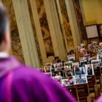 Фотаздымкі дзяцей былі змешчаны на першых лаўках, дарослых — крыху далей, міністрантаў — ля алтара, а арганіста — за музычным інструментам.